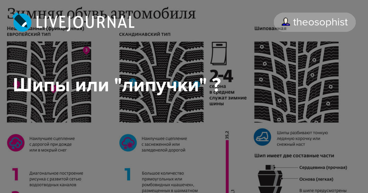 Что же, уже «тысячи копий» сломалось об эту нерешенную тему, но вывести золотую середину не получается. Если во многих странах Европы многие катаются на липучке и счастливы, то в России все далеко не однозначно! Ведь страна наша очень большая, много климатических поясов, если где-то в Сочи снега могут вообще не видеть, то где-нибудь в Сибири, снег чуть ли не круглый год! Соответственно на юге страны можно кататься и на фрикционных шинах, а вот на севере, где много льда на дорогах желательно шипы (однако это сугубо мое мнение), ведь многие мне доказывают — что липучка на льду, особенно в морозы очень ХОРОША! Ладно, сейчас не буду спорить что лучше, это уже мы делали (ссылка в начале статьи). Давайте бегло вспомним, что из себя представляет каждая из зимних покрышек.