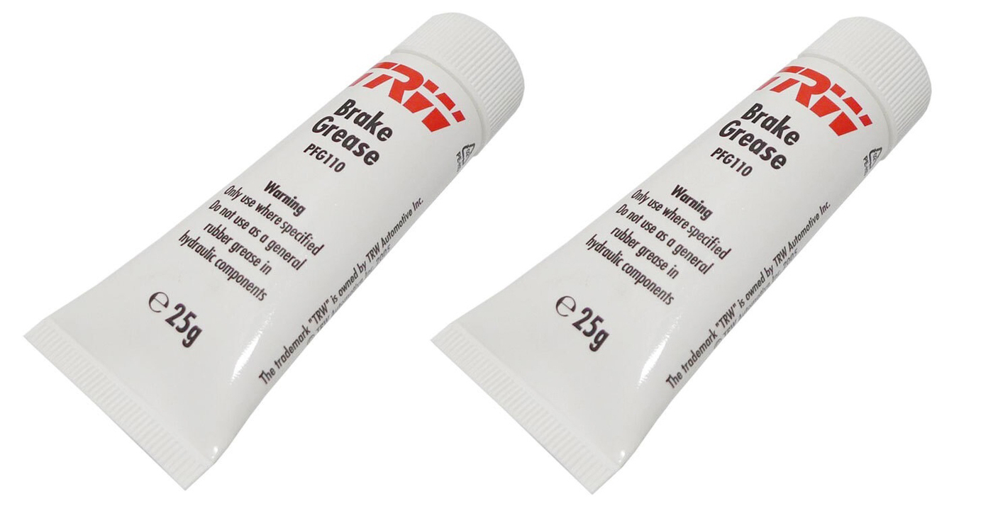 - TRW PFG110. Пожалуй, самая популярная смазка для тормозной системы в РФ. Подходит как для поршней суппортов, так и для направляющих. Совместима с тормозными системами, предназначенными для работы с гликолевыми жидкостями (DOT-3, DOT-4 и DOT-5.1). Продается в тюбиках объемом 25 грамм.