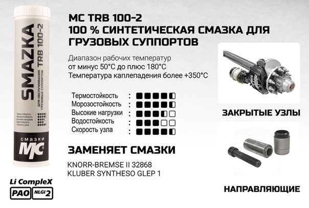 Направляющие и поршни суппортов, как и любой механизм с контактирующими подвижными частями, нуждается в смазывании. Специализированные высокотемпературные смазки для суппортов и направляющих призваны обеспечить нормальную работу и длительный ресурс тормозной системы.