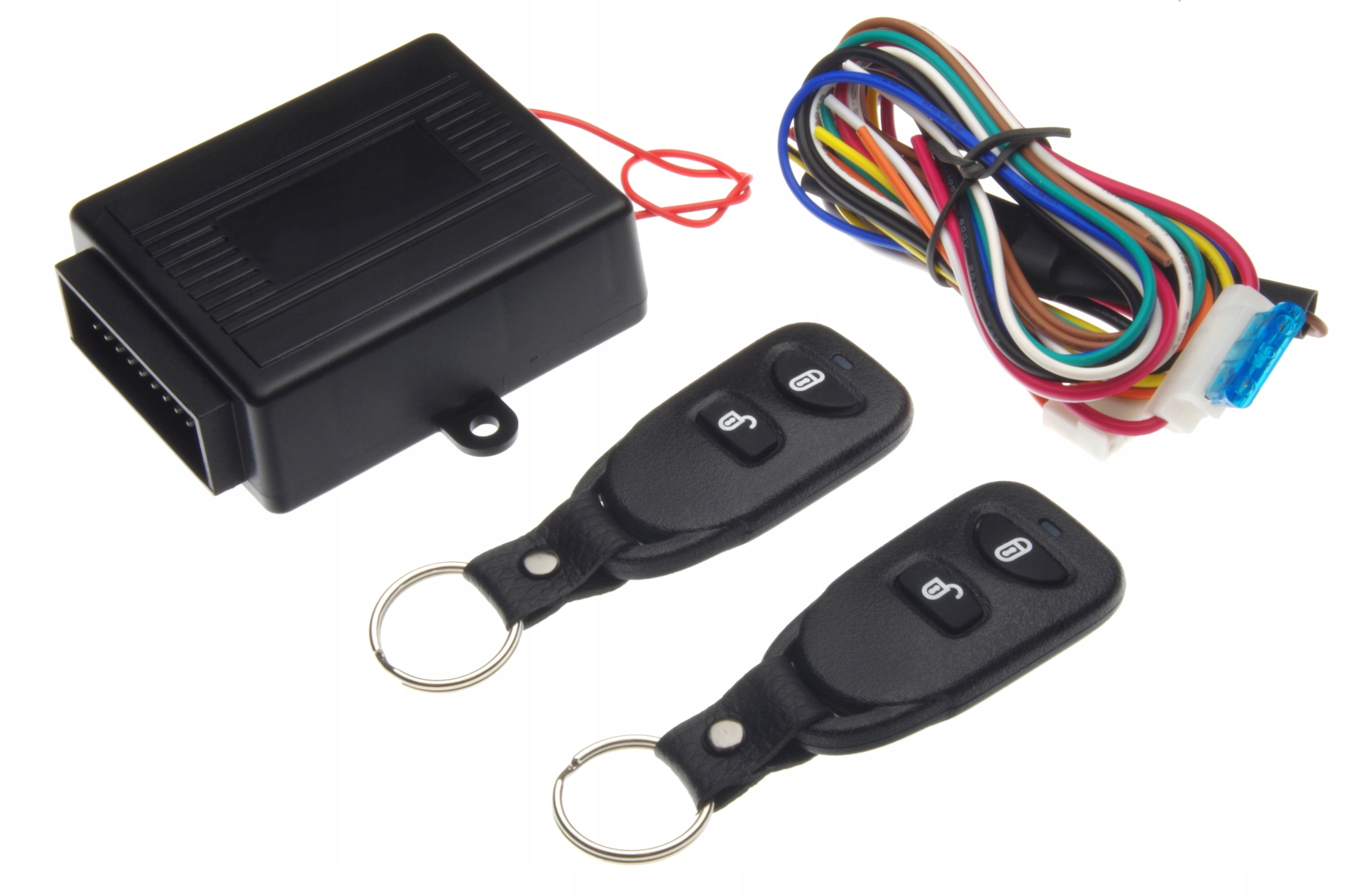 Комплектация: сам блок ЦЗ, два пульта, провод длиной 1м с синим индикаторным светодиодом, и основной жгут проводов длиной 50см, за исключением 4 проводов с нормально замкнутых и нормально разомкнутых выходных контактов реле управляющих собственно замками
