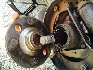 - Шлицы центральной оси ШРУСа выводятся из сочленения.