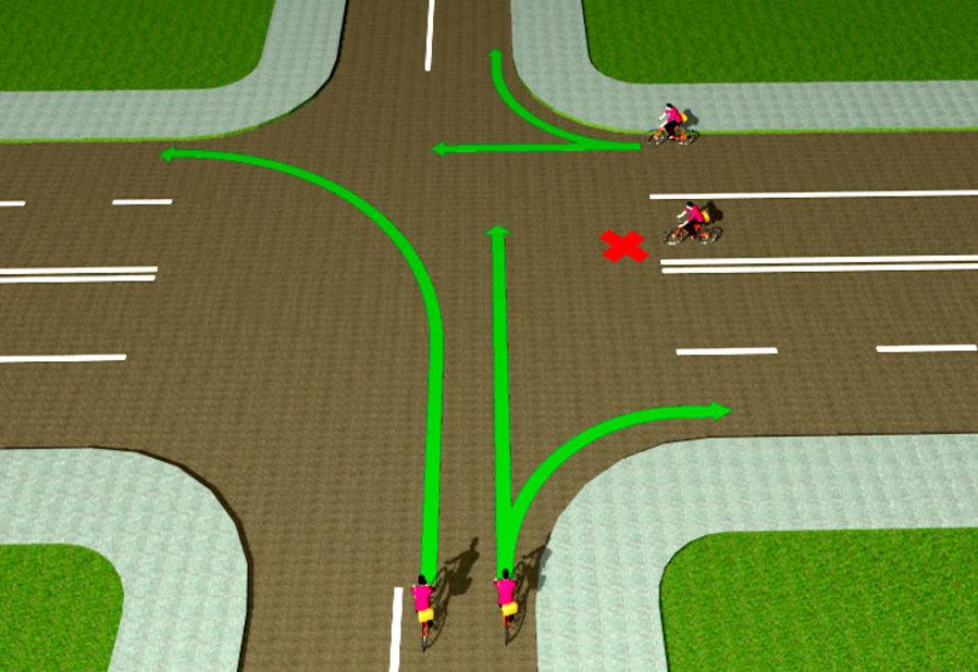Эту простую идею могут использовать и велосипедисты.Сделать поворот направо довольно просто, но повернуть налево может быть довольно сложно. Есть несколько способов сделать поворот налево, чтобы упростить процесс.